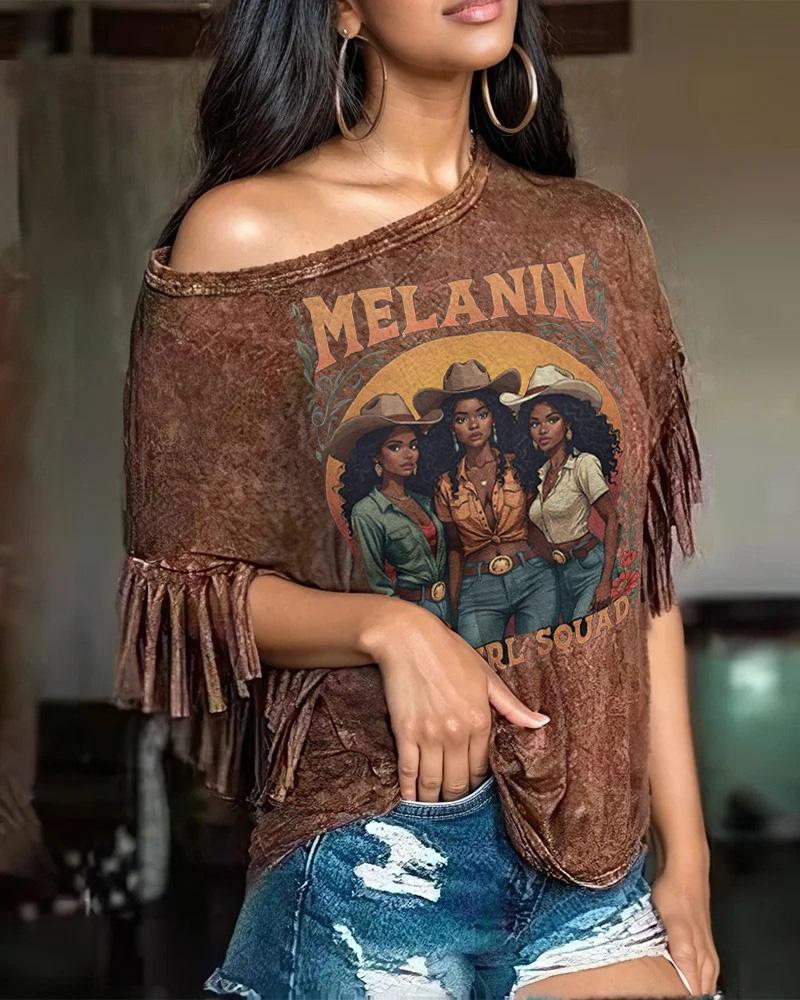 Melanin Girl Squad Loose Tassel Casual T-shirt