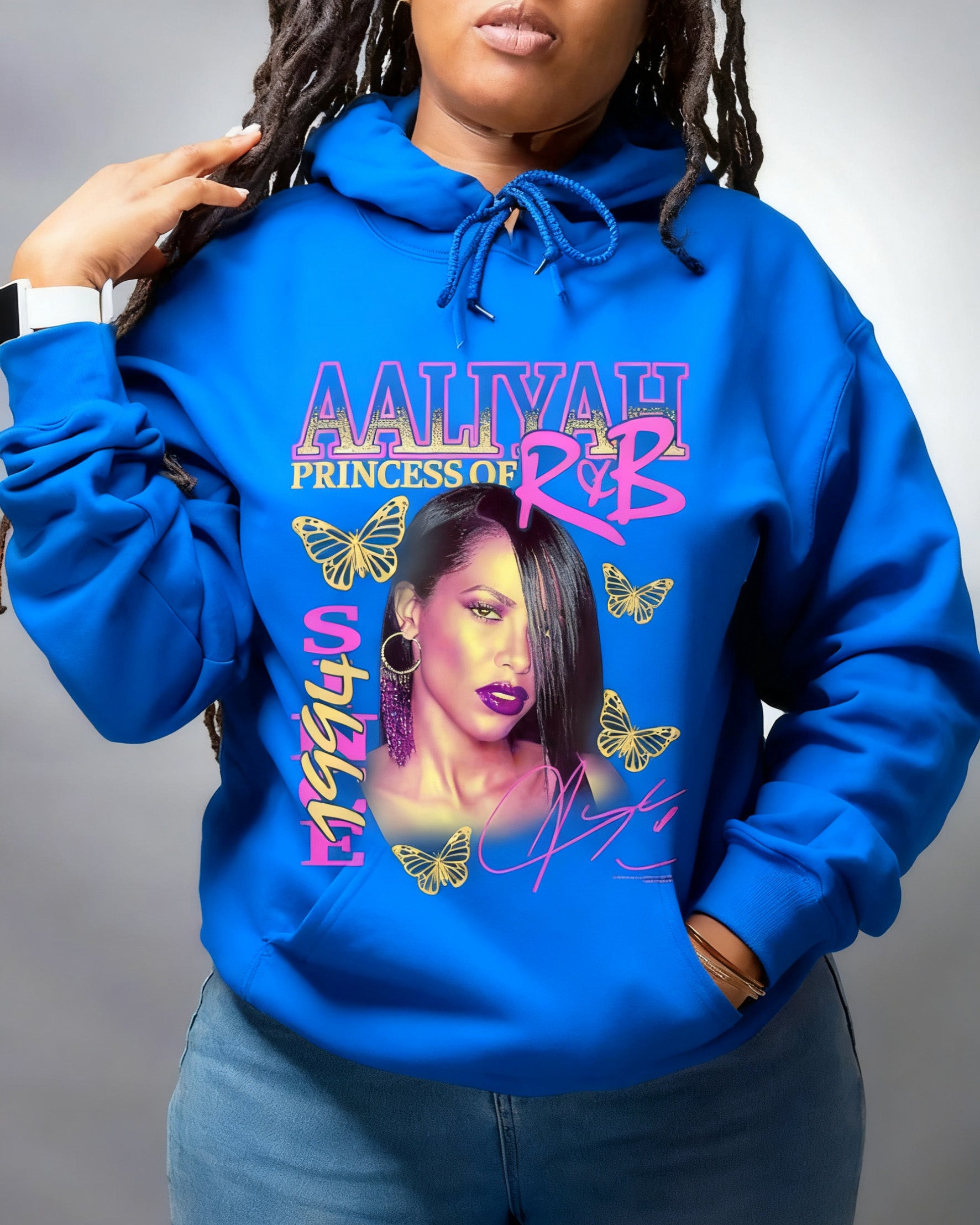 90's Retro Pink Butterflies R&B Music Cotton Long-sleeved Hoodies