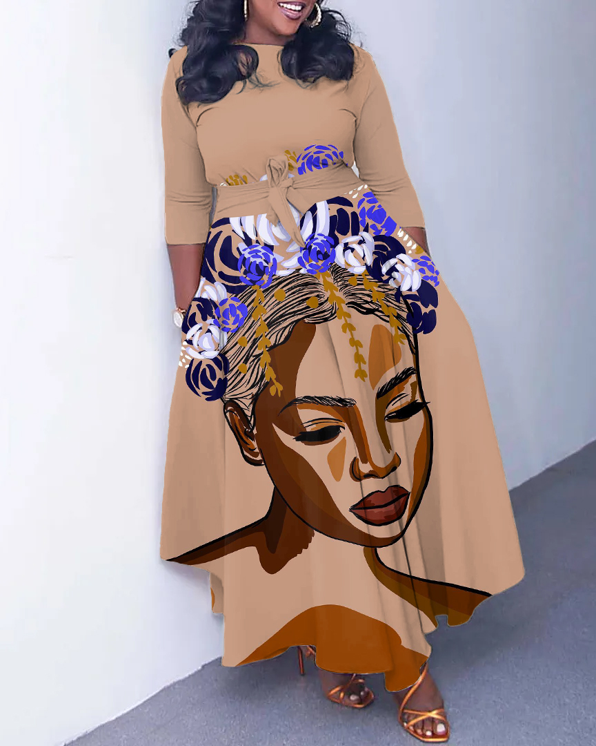 African American Art Long Sleeve Pockets Maxi Dress