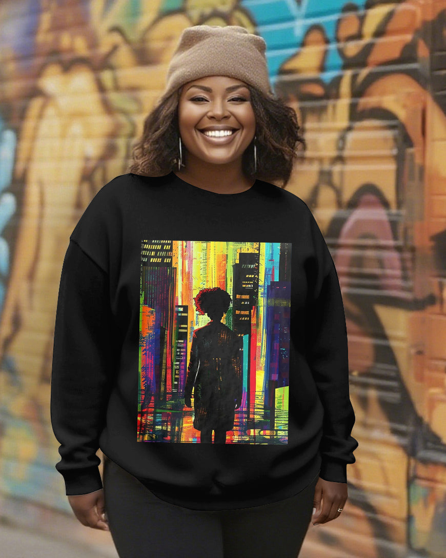 Afro Glitch City Journal Crewneck Long Sleeve Sweatshirt