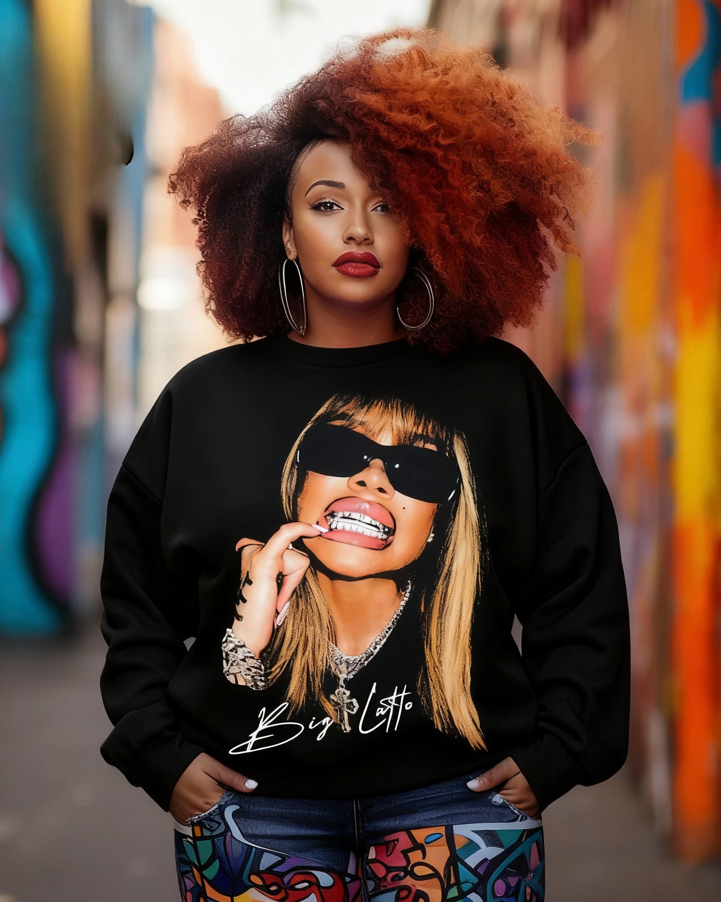 Big Latto Graphic Design Crewneck Long Sleeve Sweatshirt