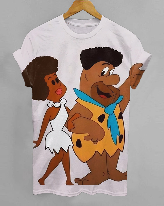 Black Cartoon Couple Print Crew Neck Short Sleeve Tshirt