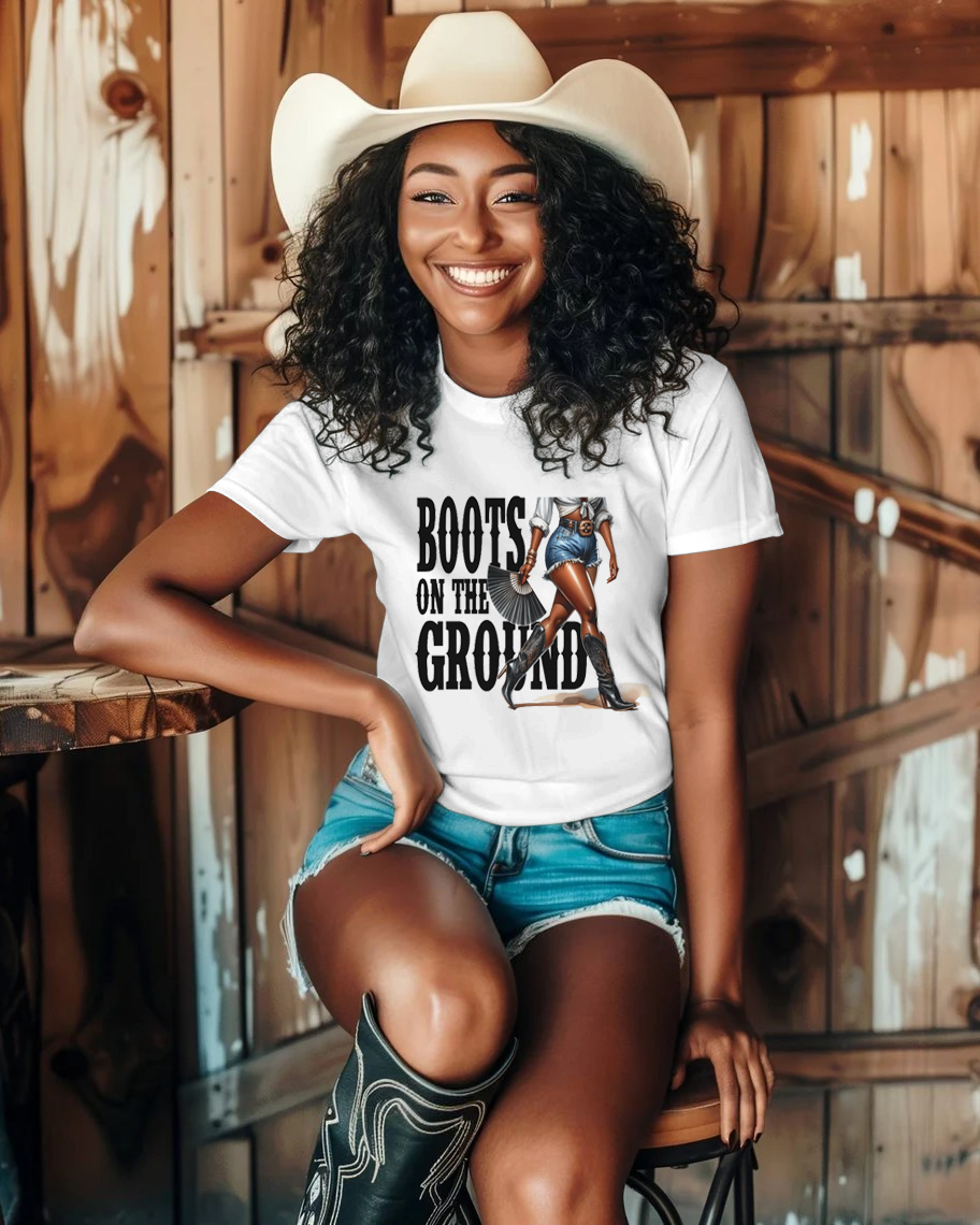 Black Cowgirl Boots 100% Cotton Crew Neck Short Sleeve Tshirt