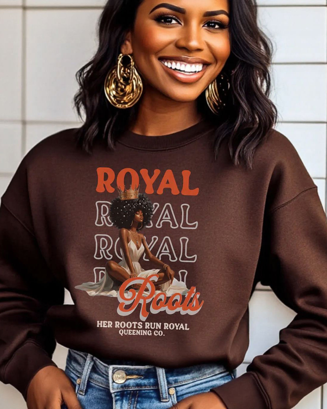 Black Queen Feminist Strong Woman Crewneck Long Sleeve Sweatshirt