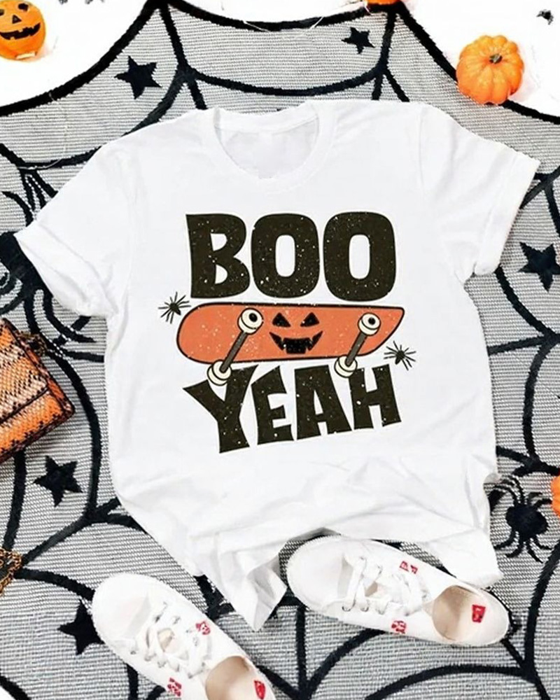 Boo Yeah Skateboard Crew Neck Casual Short-Sleeved T-Shirt