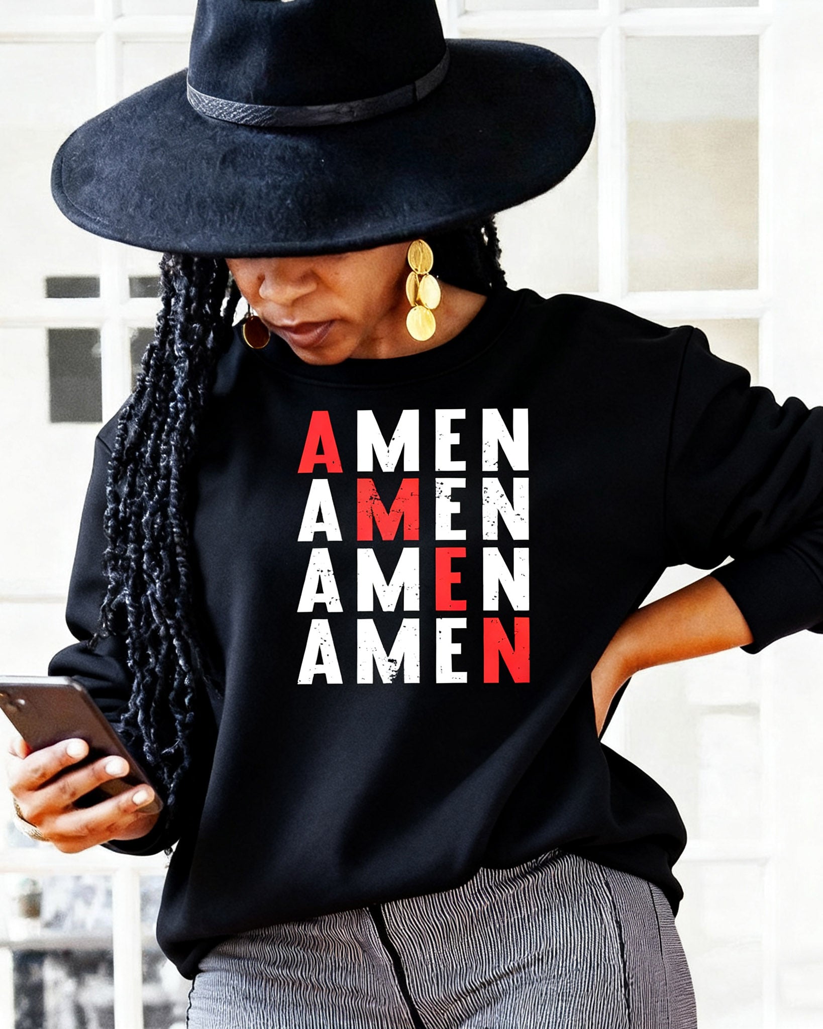 Christian Amen Letters Print Crewneck Long Sleeve Sweatshirt