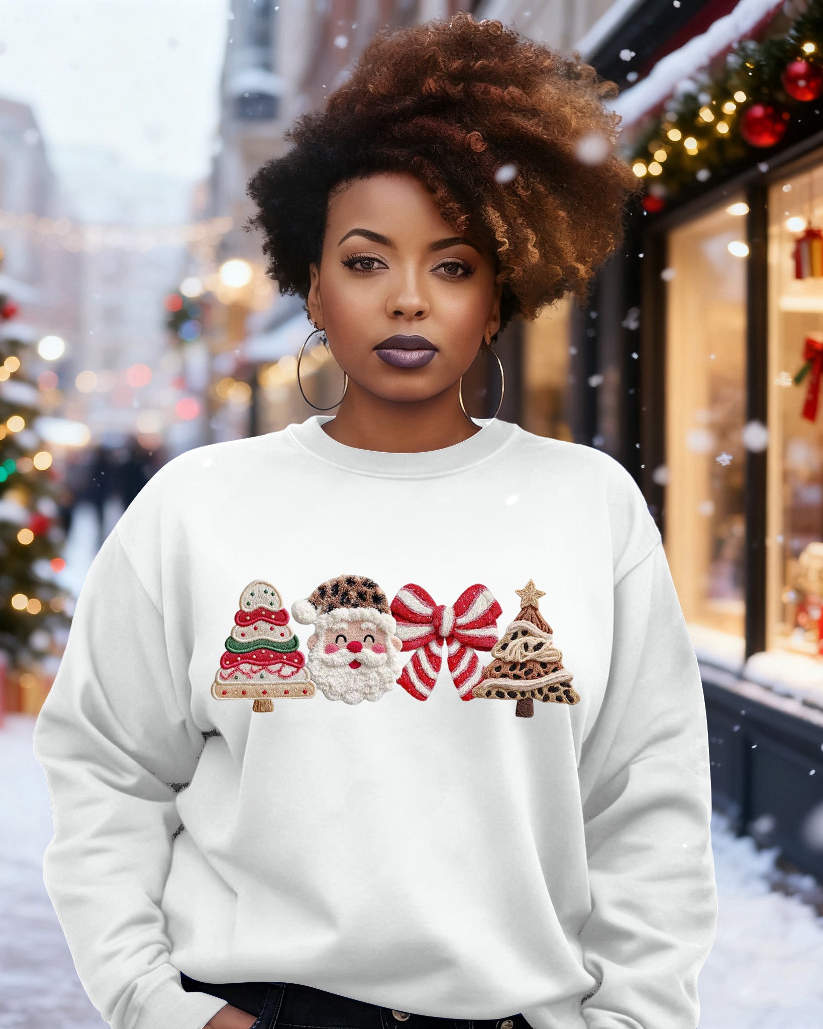 Christmas Season Leopard Santa Crewneck Long Sleeve Sweatshirt