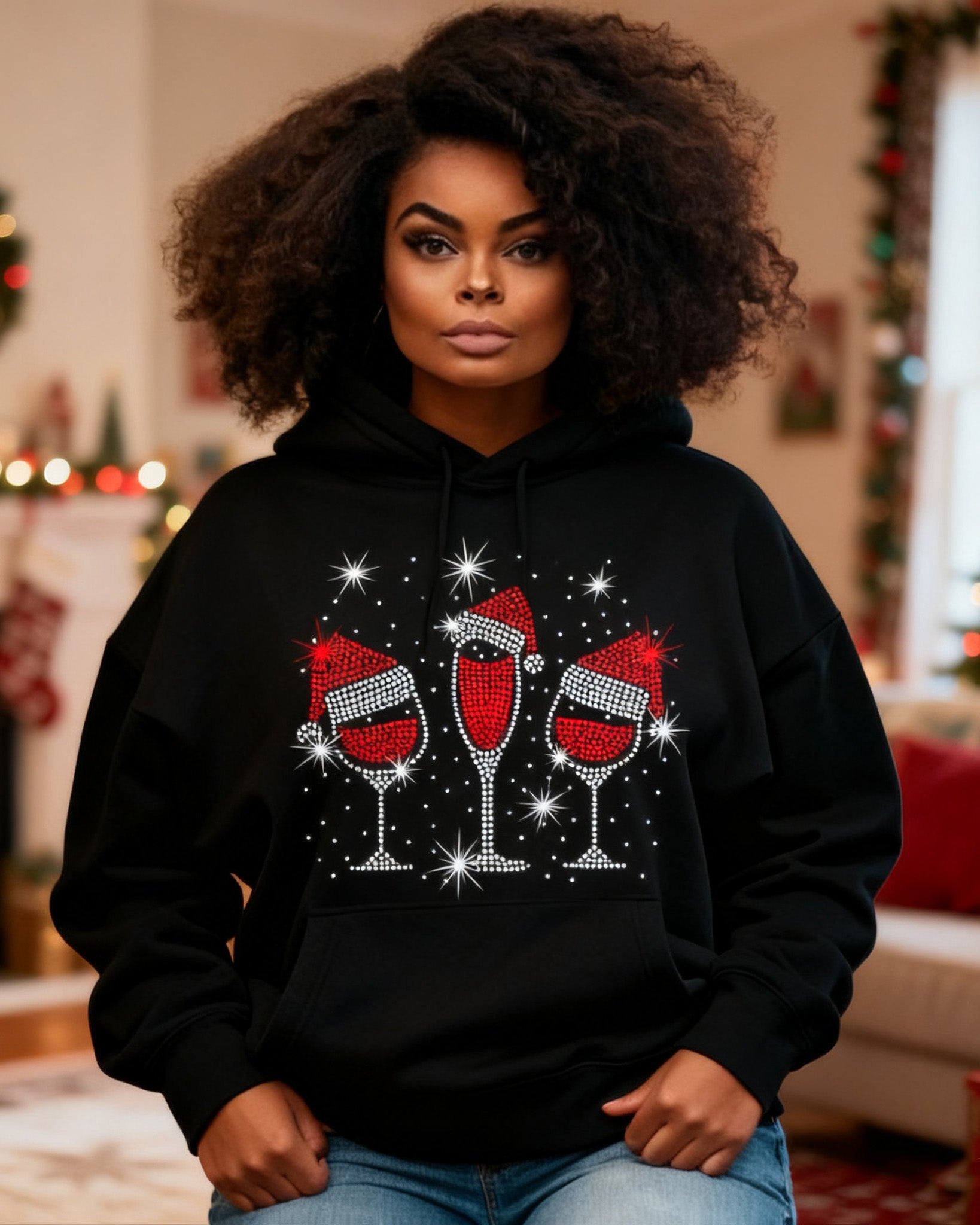 CHRISTMAS WINE GLASSES Long-sleeved Hoodies