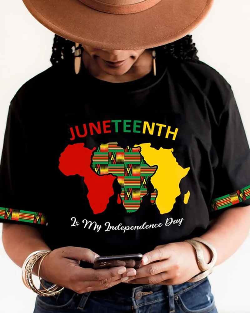 Contrasting Juneteenth Africa Map Print Short Sleeve T-Shirt