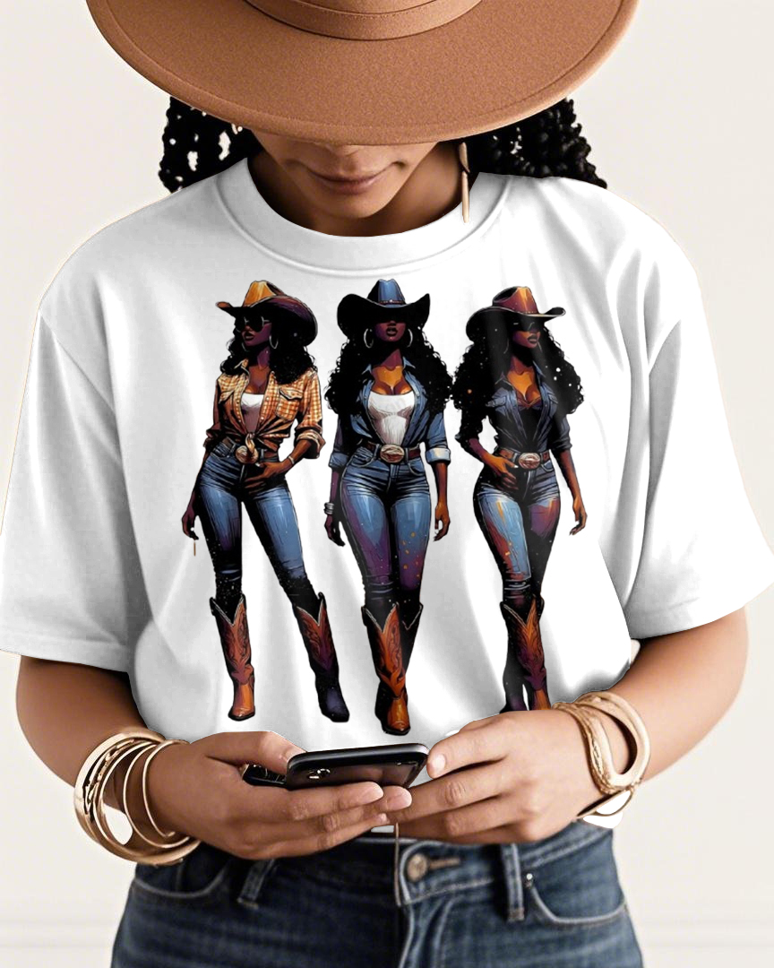Cool Black Cow Girl 100% Cotton Crew Neck Short Sleeve Tshirt