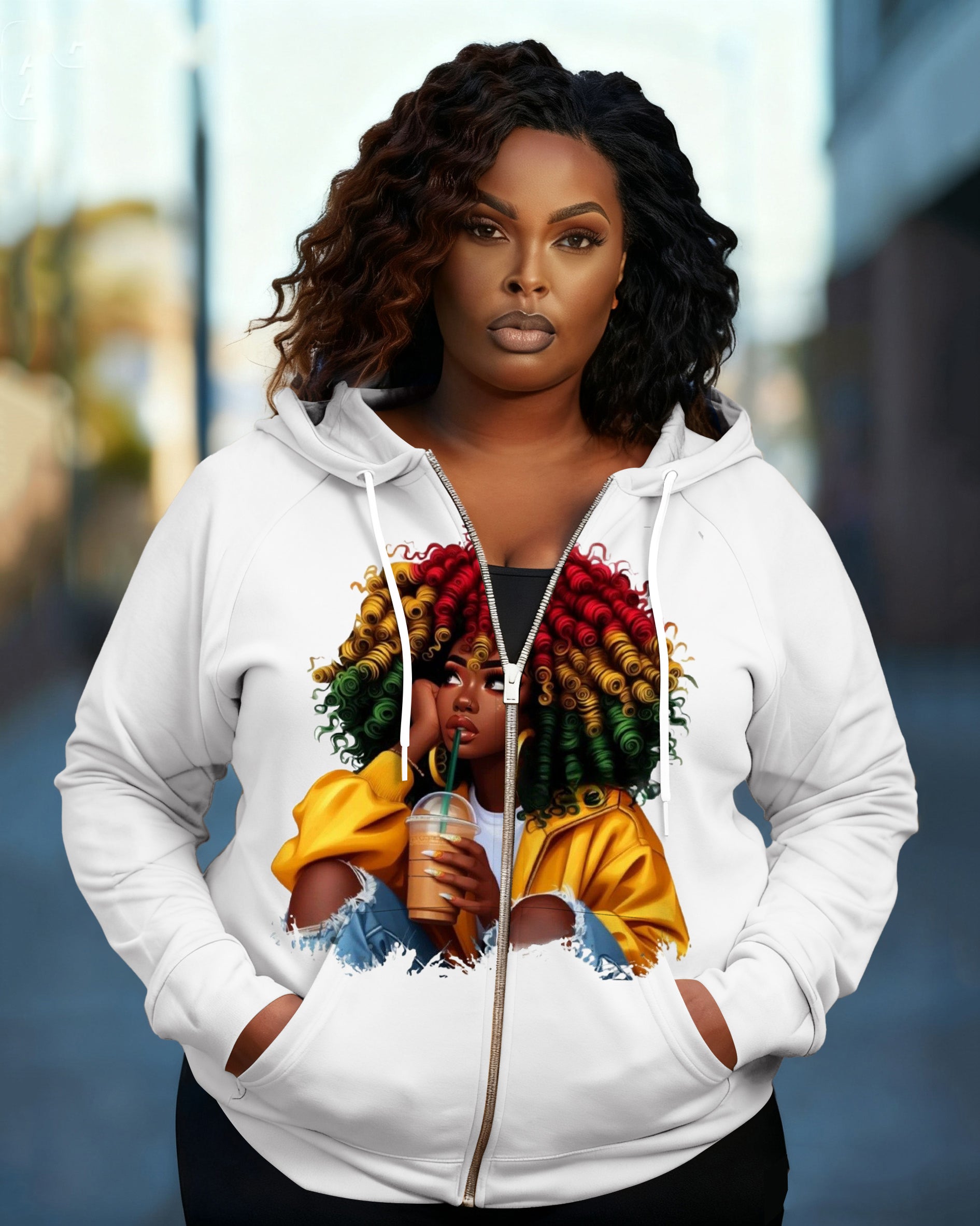 Curly Queen Loc'd Hair Long Sleeve Zip-Up Hoodies