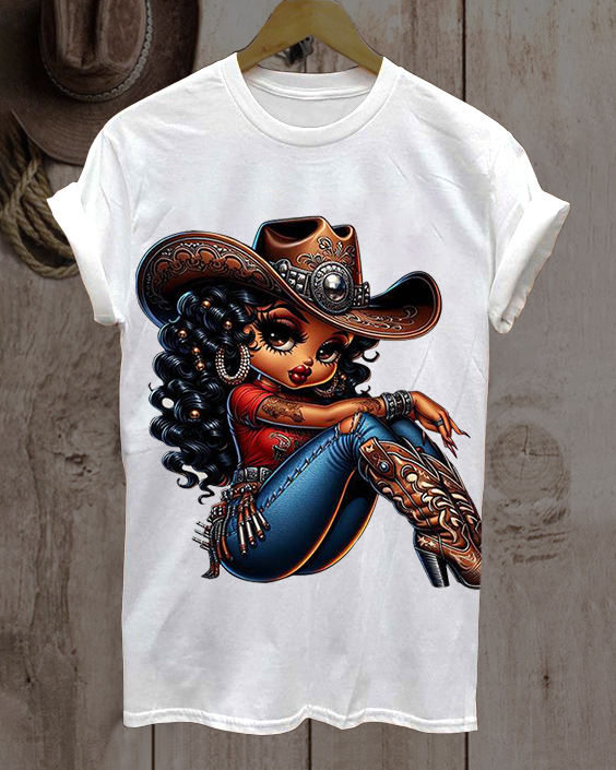 Cute Melanin Black Cowgirls Neck Short Sleeve Tshirt