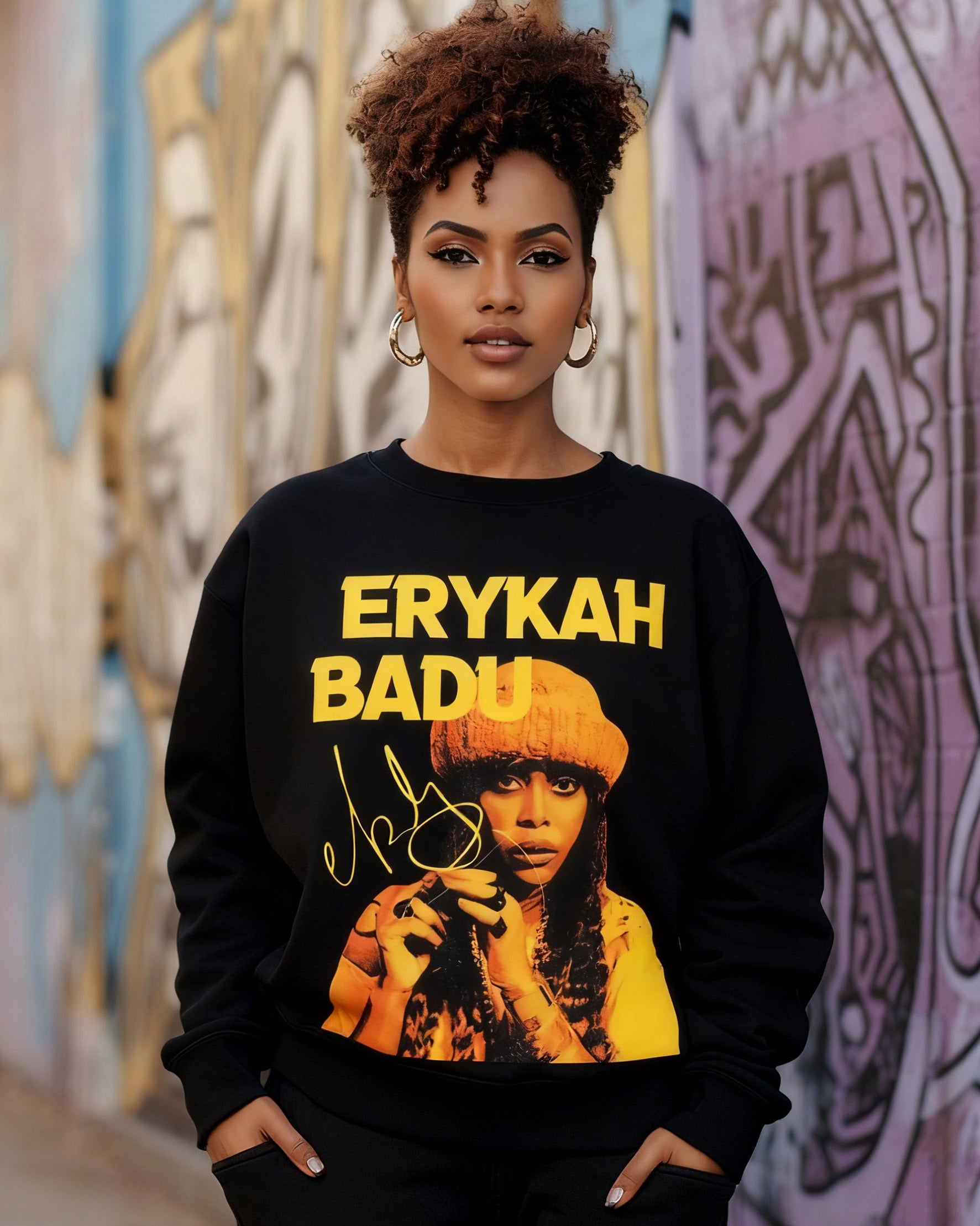 Erykah Badu Character Printed Crewneck Long Sleeve Sweatshirt