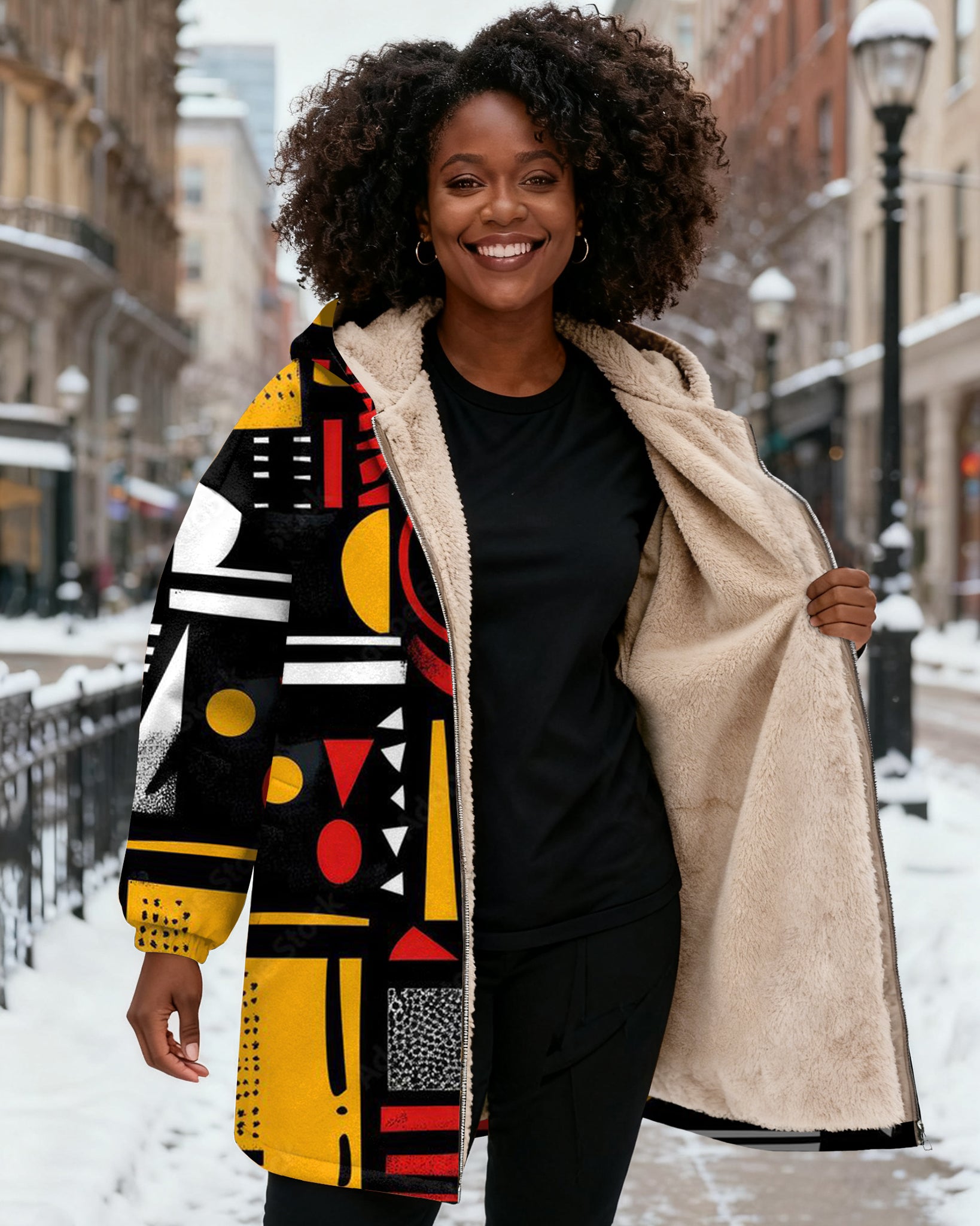 Ethnic African Pattern Long Sleeve Zip-Up Fleece Long Hoodies