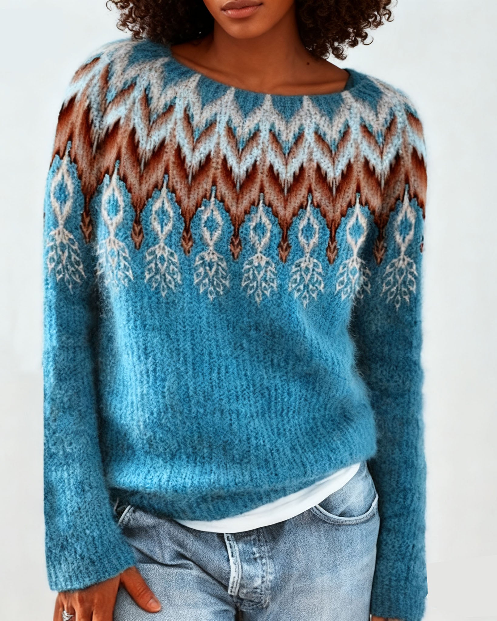 Feather Stripes Long Sleeve Loose Knit Sweater