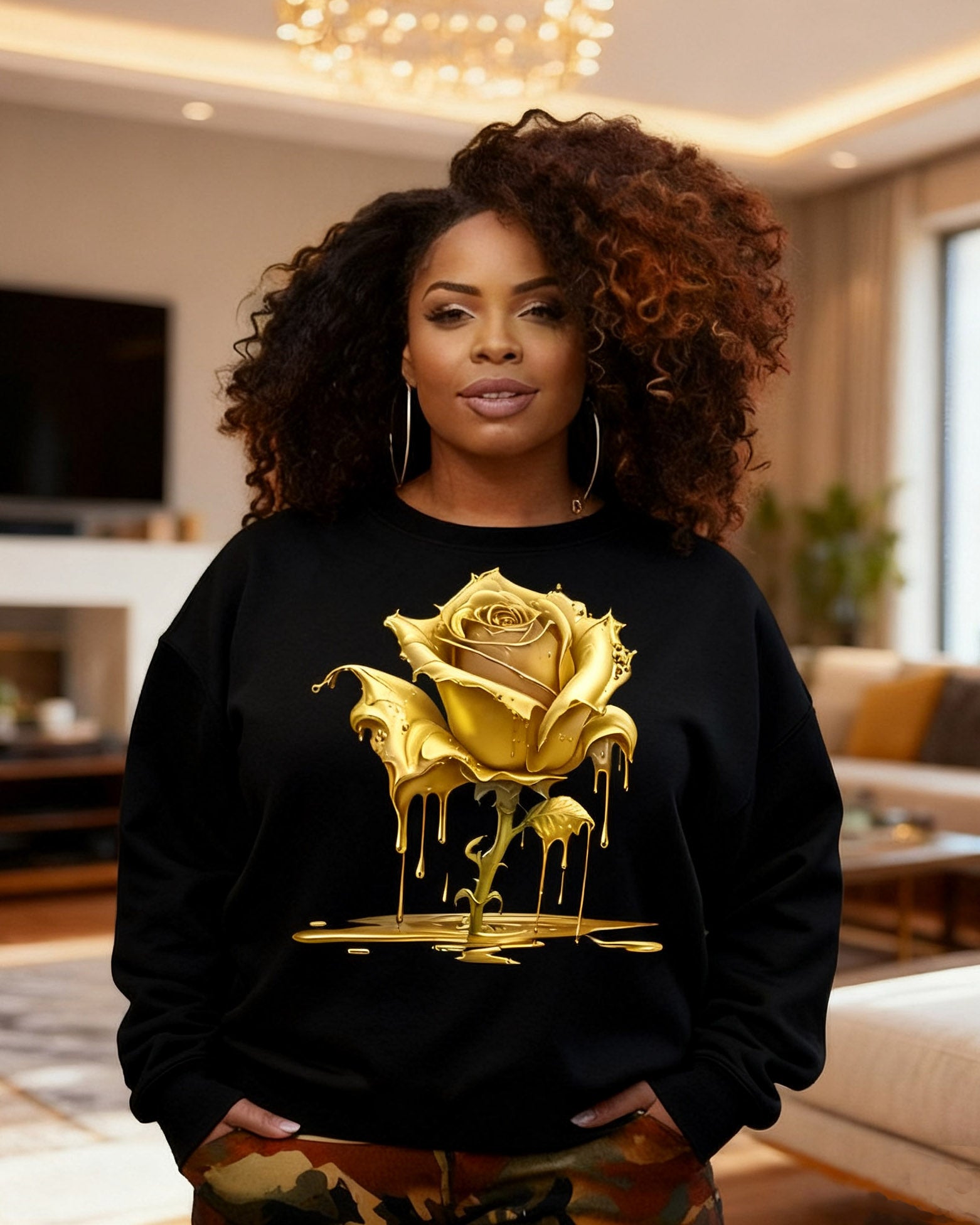 Floral Rose Print Crewneck Long Sleeve Sweatshirt