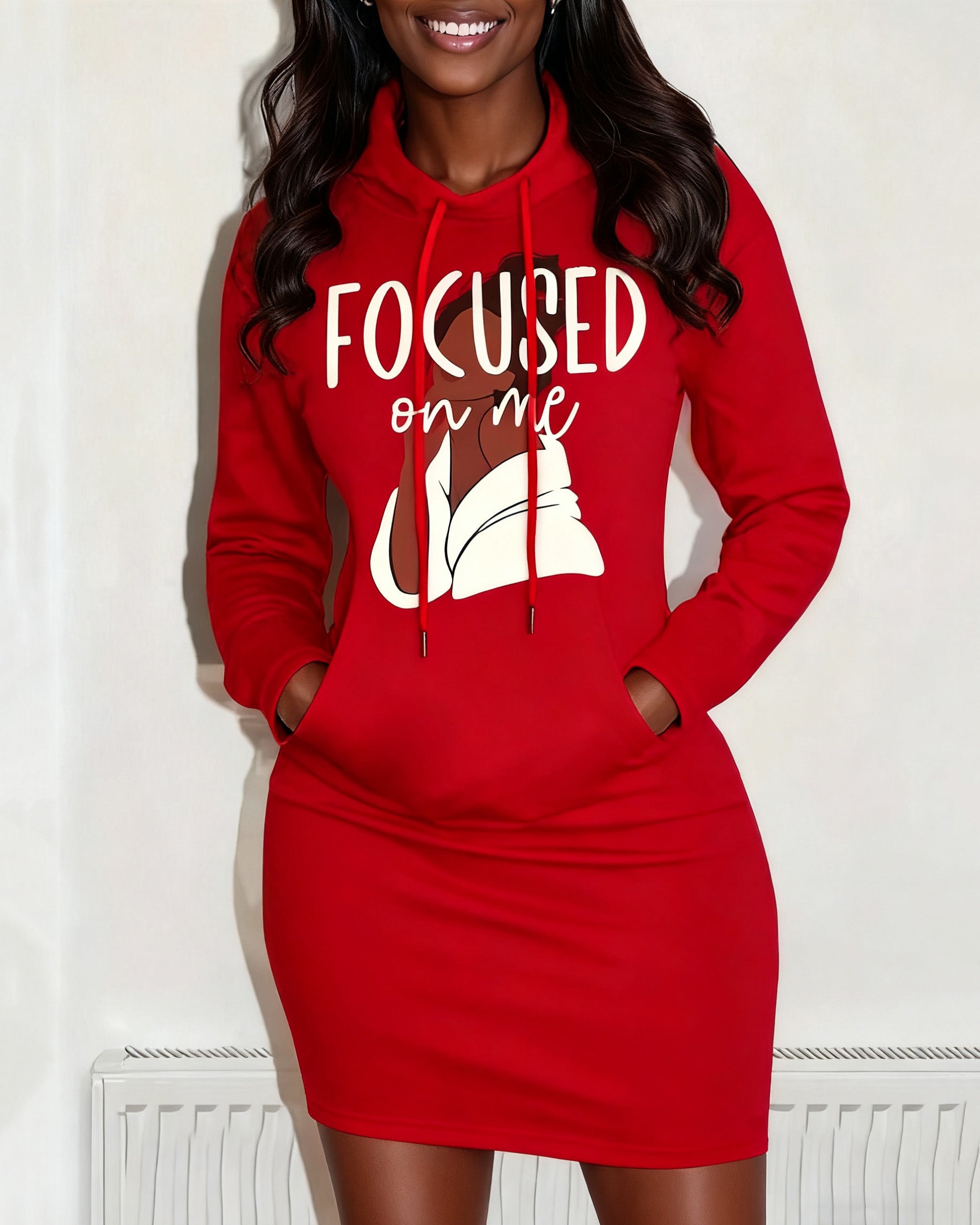 Focused On Me Pocket Drawstring Long Sleeve Hoodie Dress