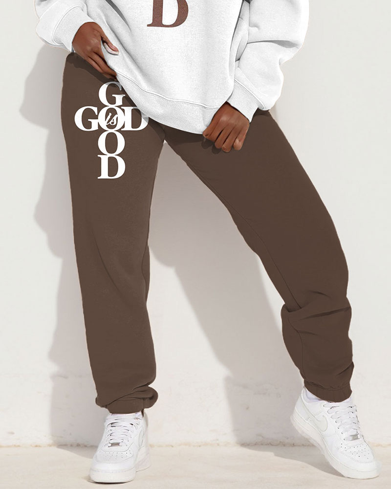 God is Good Print Long Sleeve Sweatshirt Two Pieces Set