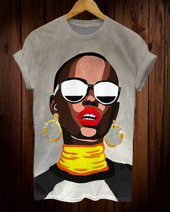 Gold Necklace Bald African Girl Art Short Sleeve Tshirt