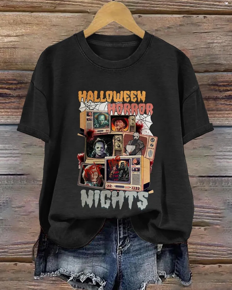 Halloween Horror Wights Spooky Season Cotton Crew Neck Short Sleeve Tshirt