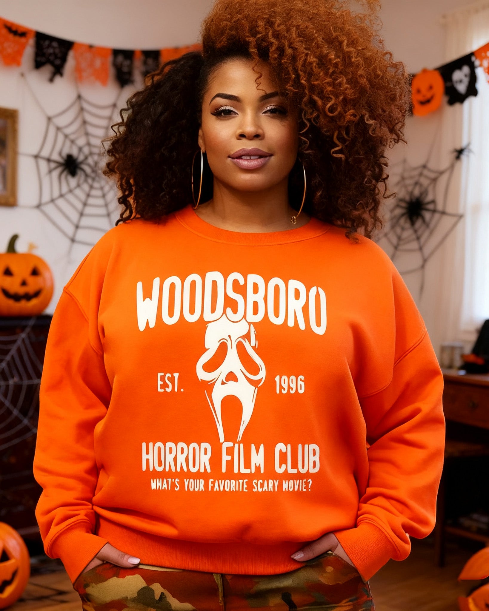 Halloween Woodsboro Horror Club Crewneck Long Sleeve Sweatshirt