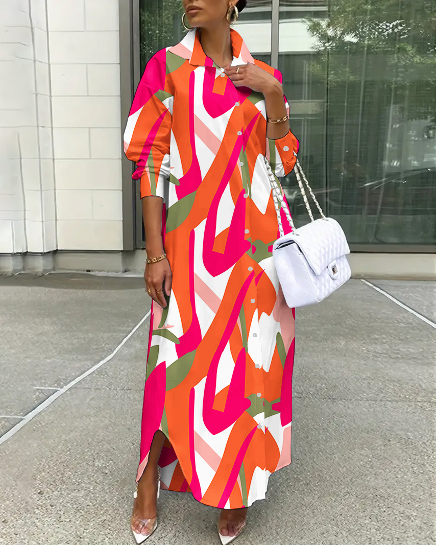 Hawaiian Stripes Contrast Long Sleeve Casual Shirt Dress