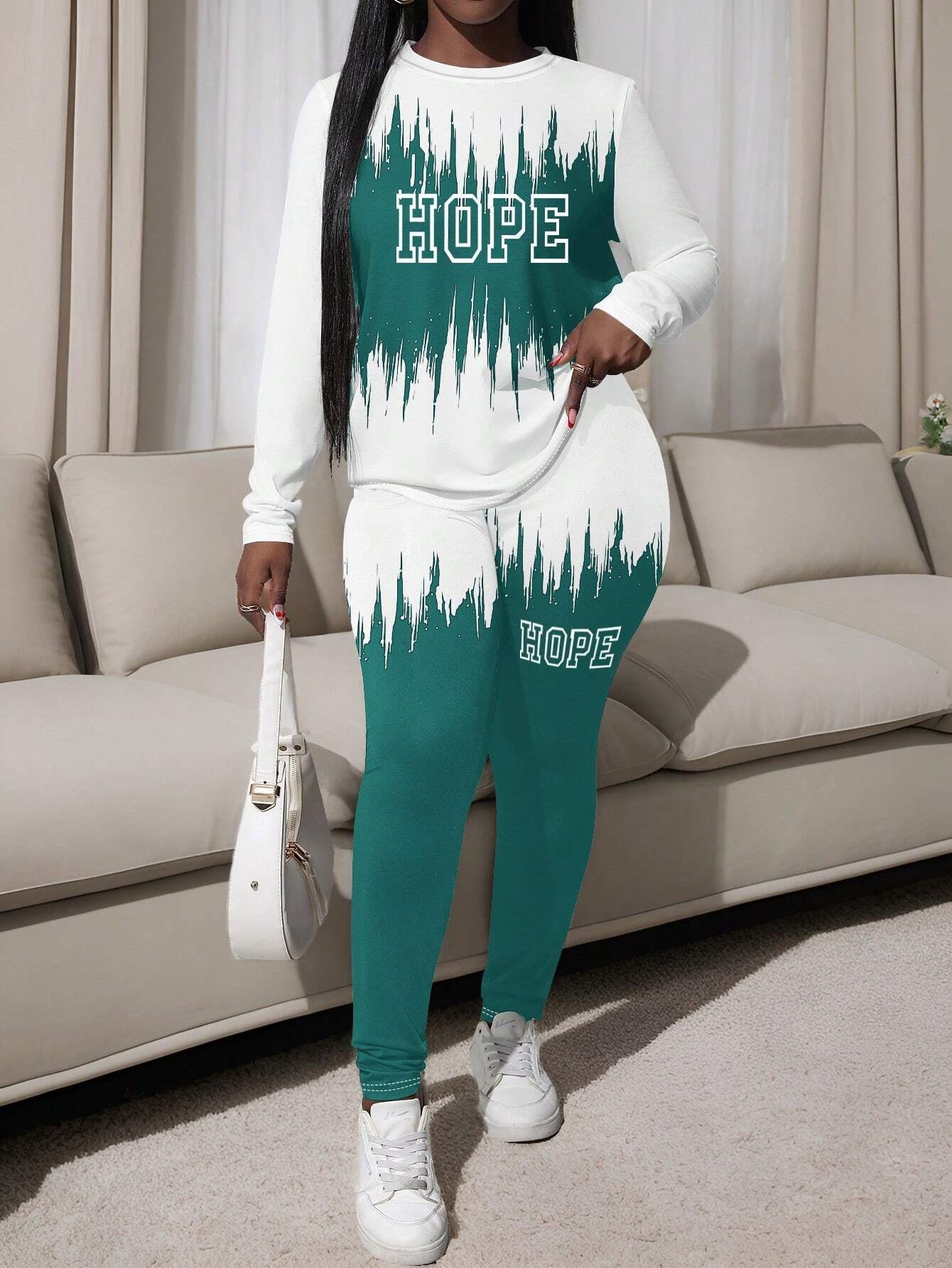 Hope Ripple Print Crew Neck Sweatshirt Two Pieces Set
