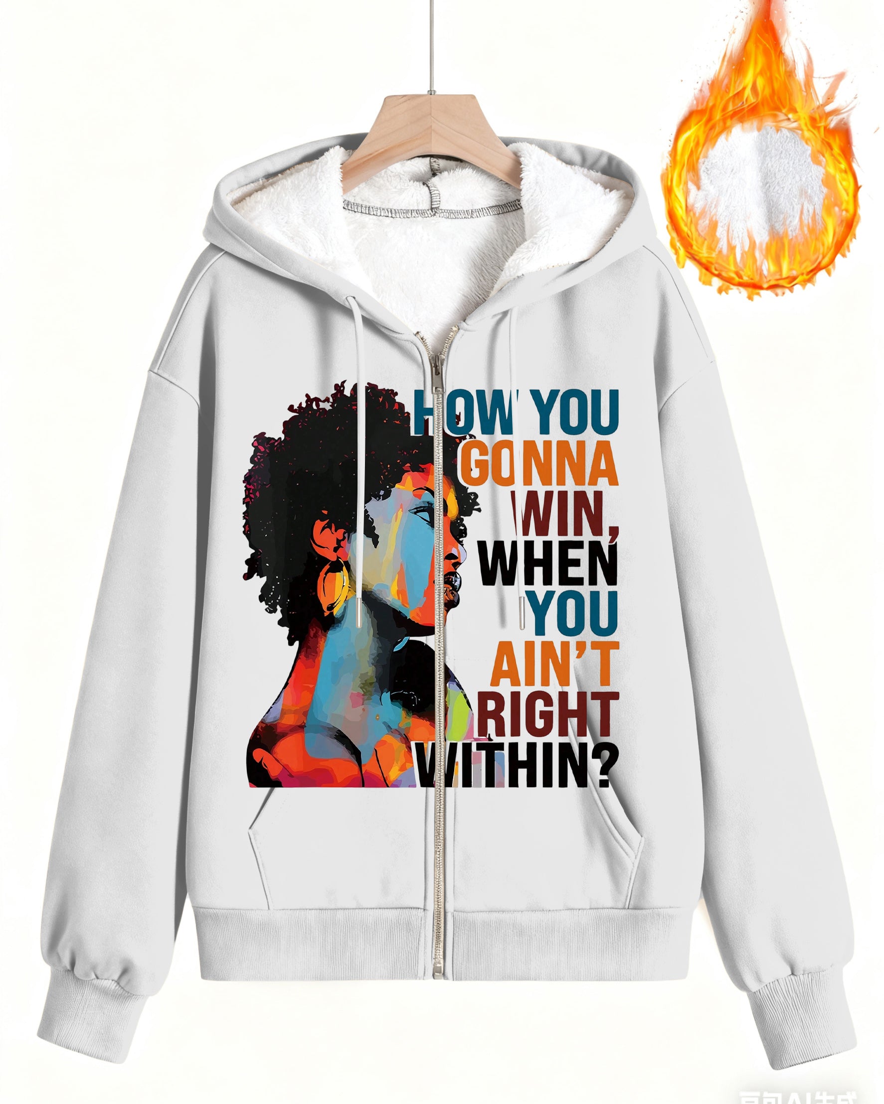 How You Gonna Win?" Artistic Portrait Design Long Sleeve Zip-Up Fleece Hoodies