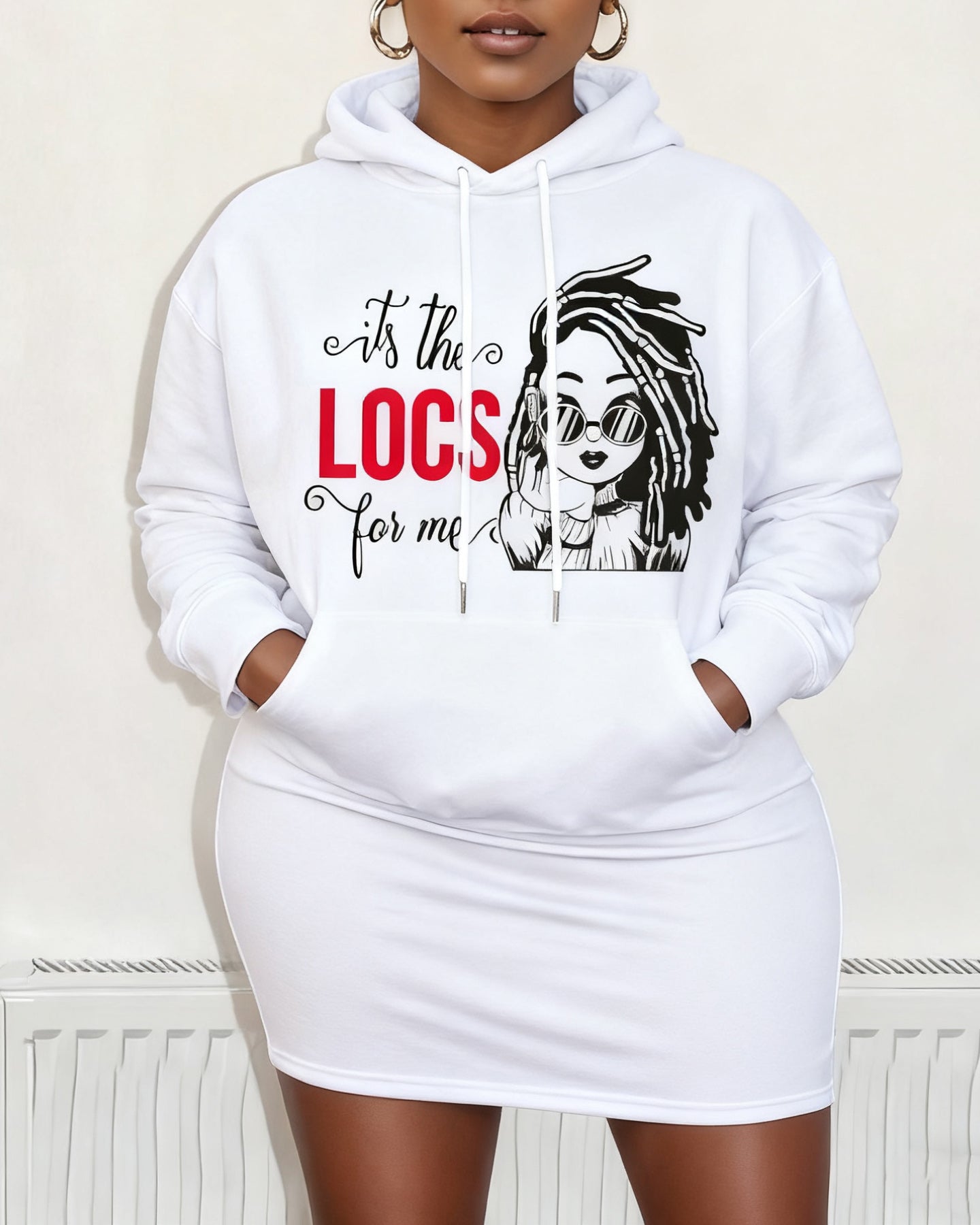 It's The Locs for Me Pocket Drawstring Long Sleeve Hoodie Dress