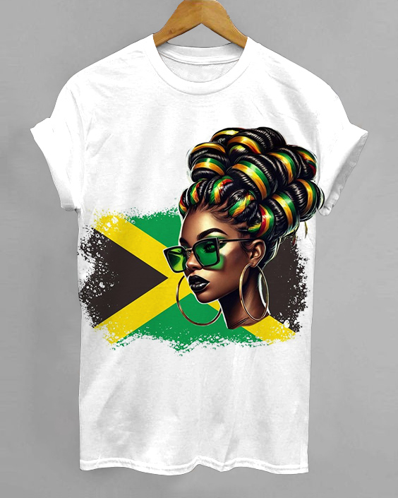 Jamaican Afro Messy Bun Crew Neck Short Sleeve Tshirt