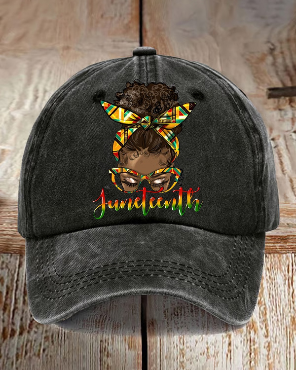 Juneteenth Black Woman Messy Bun Wash Baseball Cap