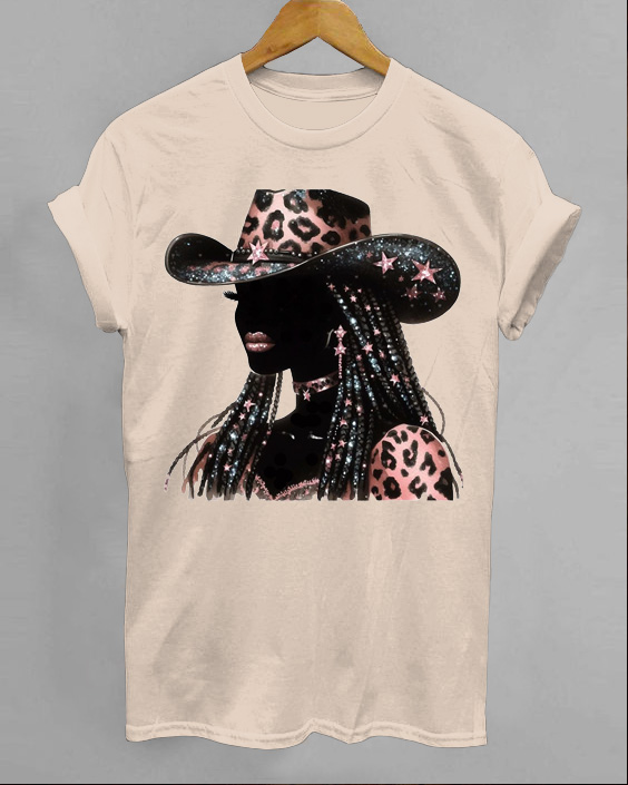 Leopard Black CowGirl Crew Neck Short Sleeve Cotton T-shirt