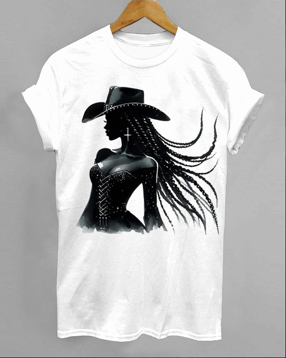 Magic Black CowGirl Crew Neck Short Sleeve Cotton T-shirt