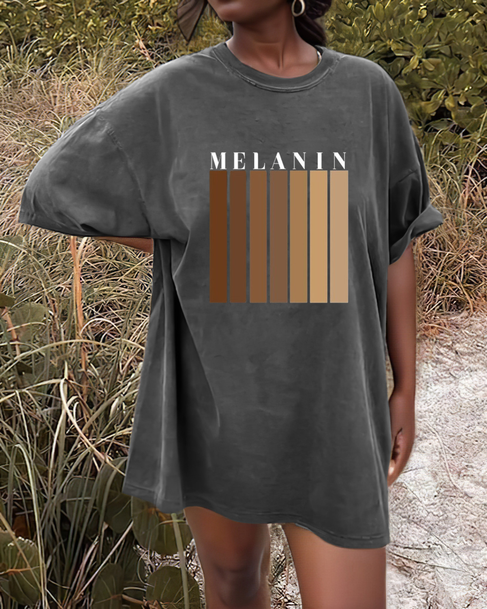 Melanin Black Girl Washed Cotton Crew Neck Loose Short Sleeve Tshirt