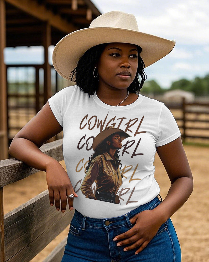 Melanin Cowgirl Crew Neck Short Sleeve Cotton T-shirt