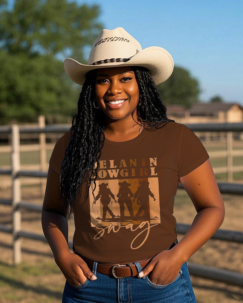Melanin Cowgirl Swag Crew Neck Short Sleeve Cotton T-shirt