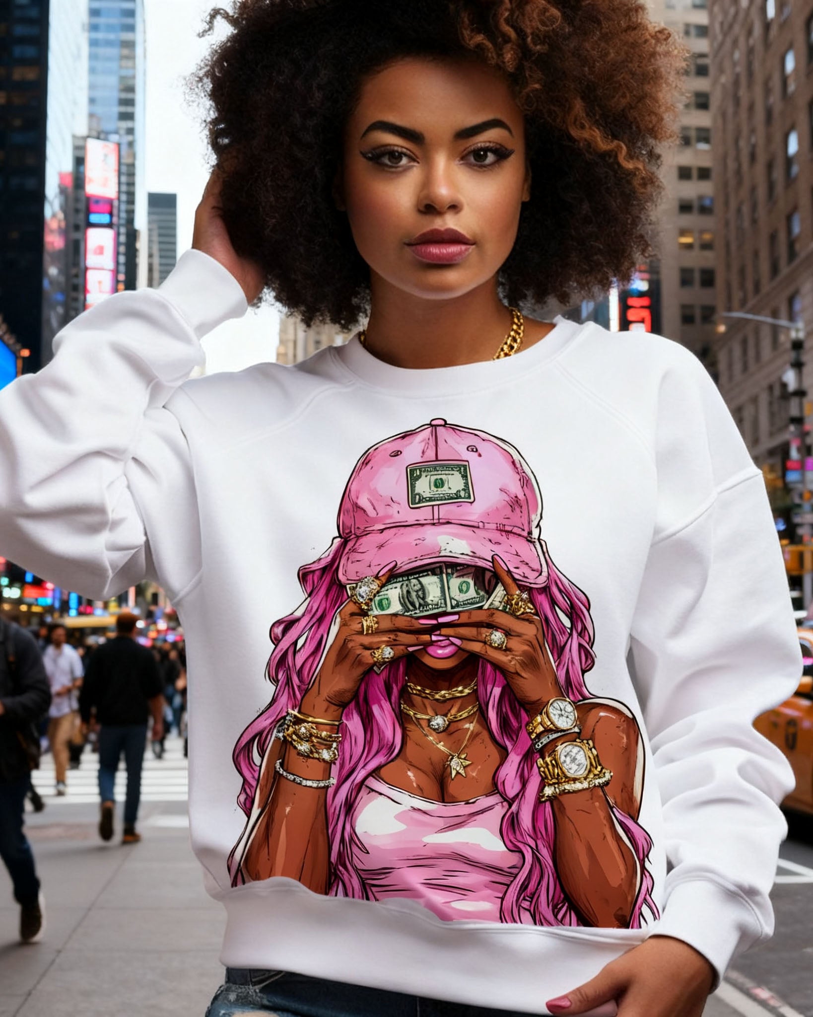 Pink Portrait Graphic Crewneck Long Sleeve Sweatshirt