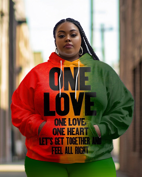 Reggae Color One Love Print Long Sleeve Hoodie Two Pieces Set