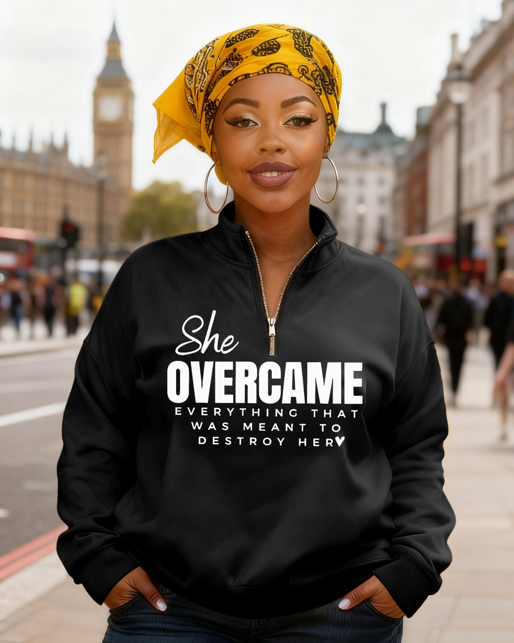 She Overcame Everything Stand Collar Zip Up Long Sleeve Sweatshirt