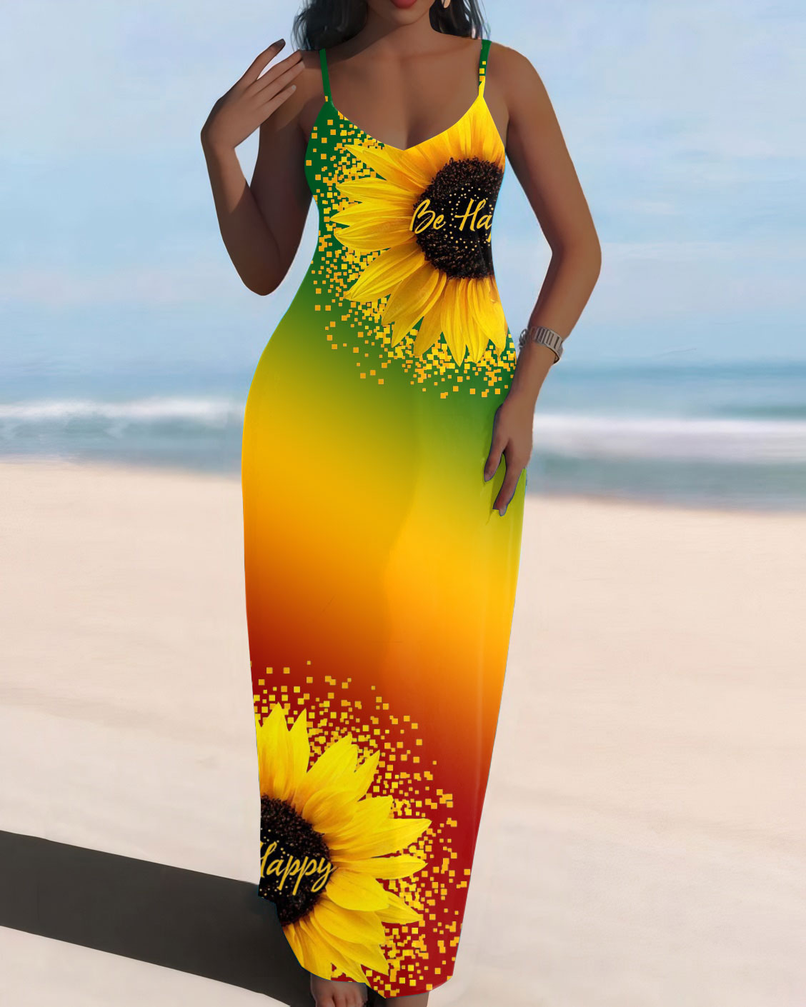 Sling Reggae Gradient Sunflower Pocket Dress