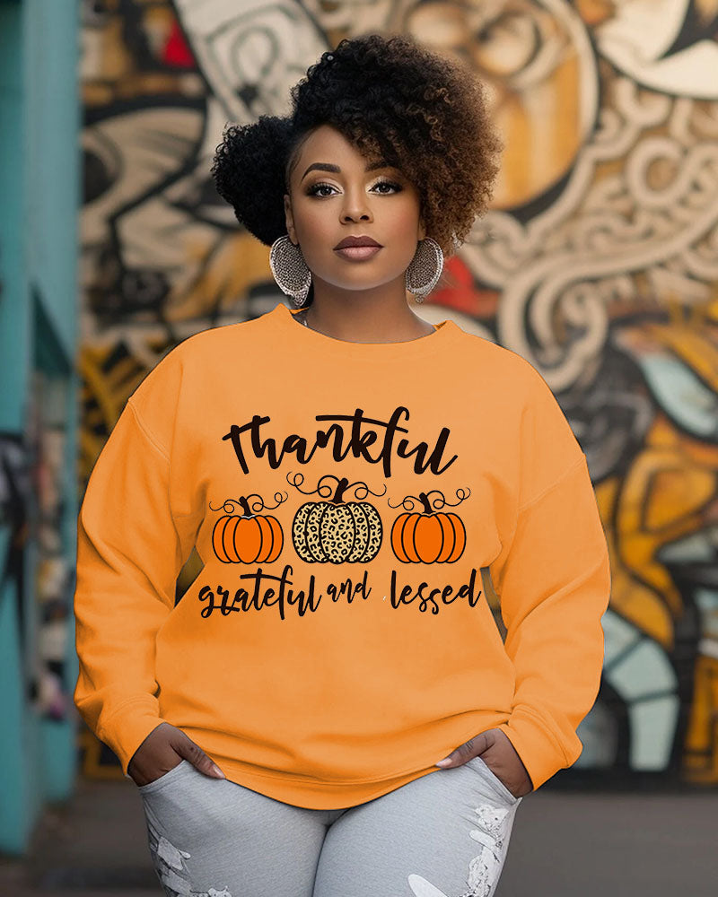 Thankful Grateful And Blessed Pumpkin Crewneck Long Sleeve Sweatshirt