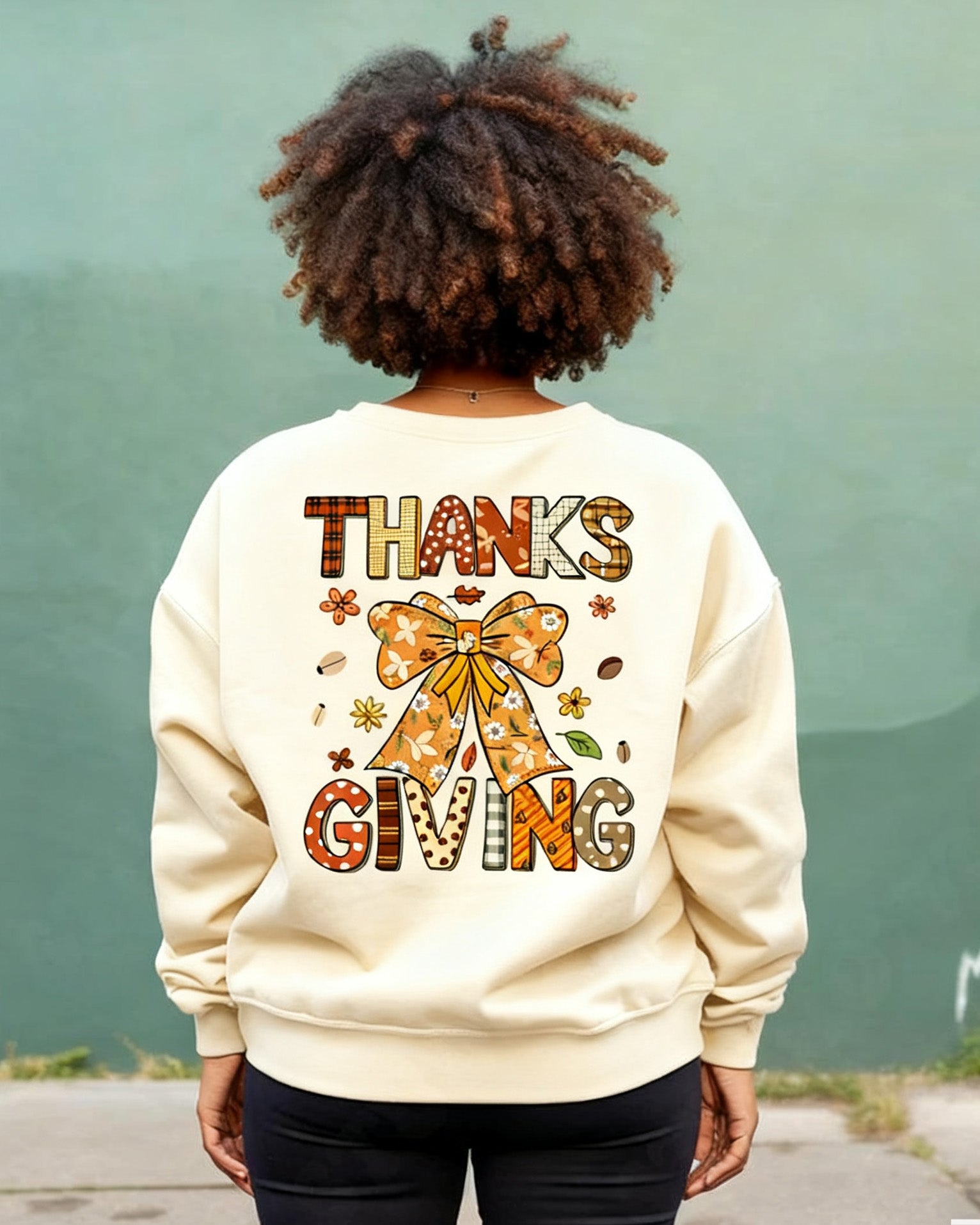 Thanksgiving Bow Crewneck Long Sleeve Sweatshirt