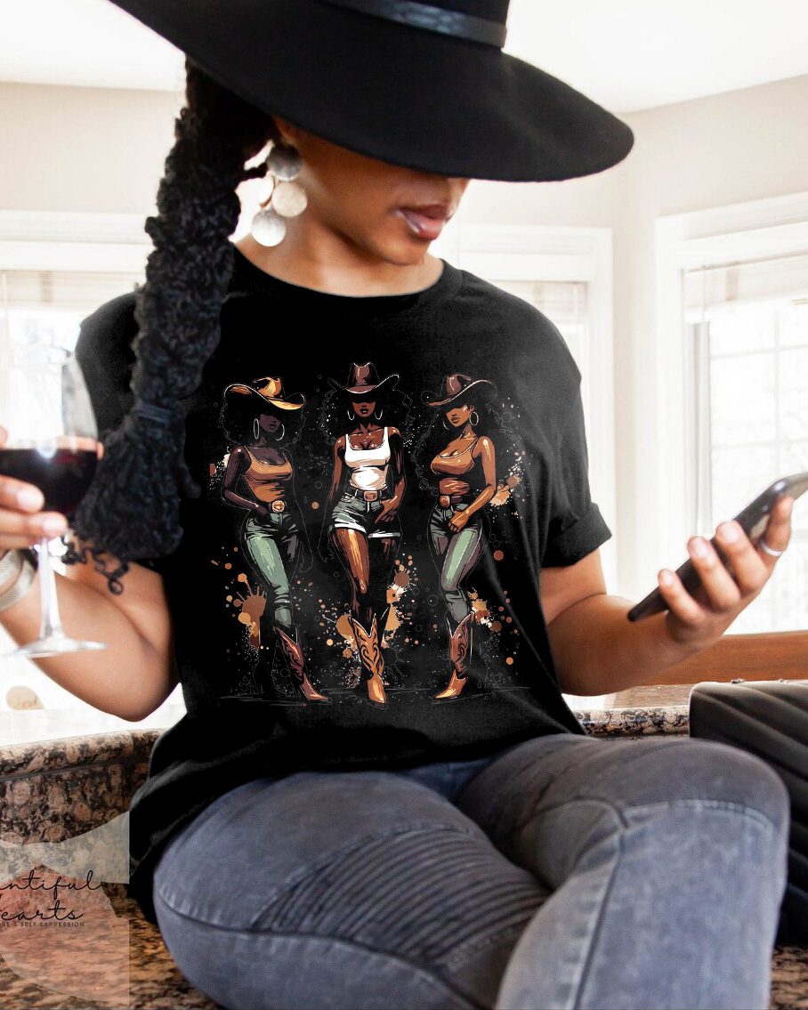 Western Brown Cow Girl 100% Cotton Crew Neck Short Sleeve Tshirt
