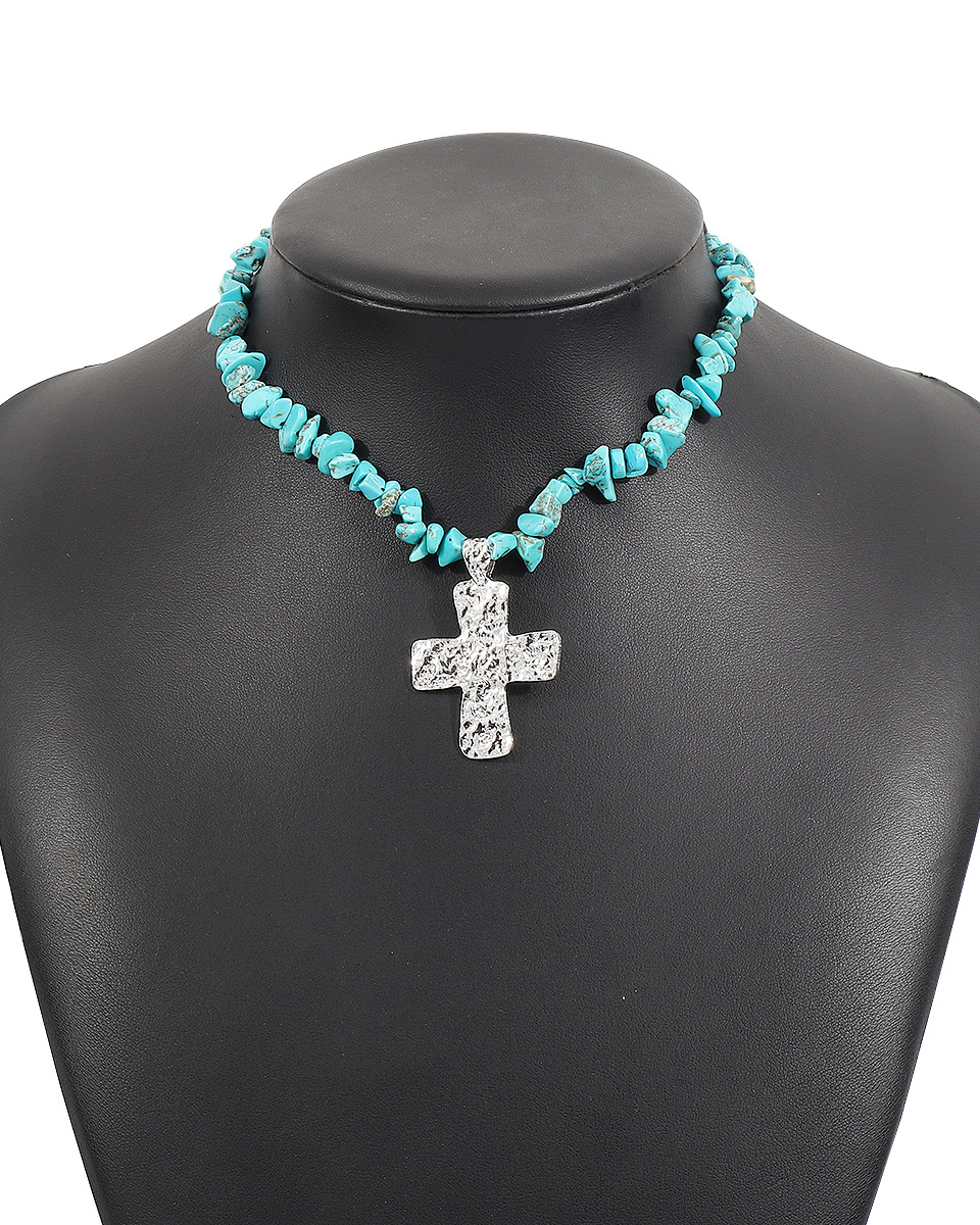 Western Cowboy Style Natural Stone Turquoise Cross Necklace