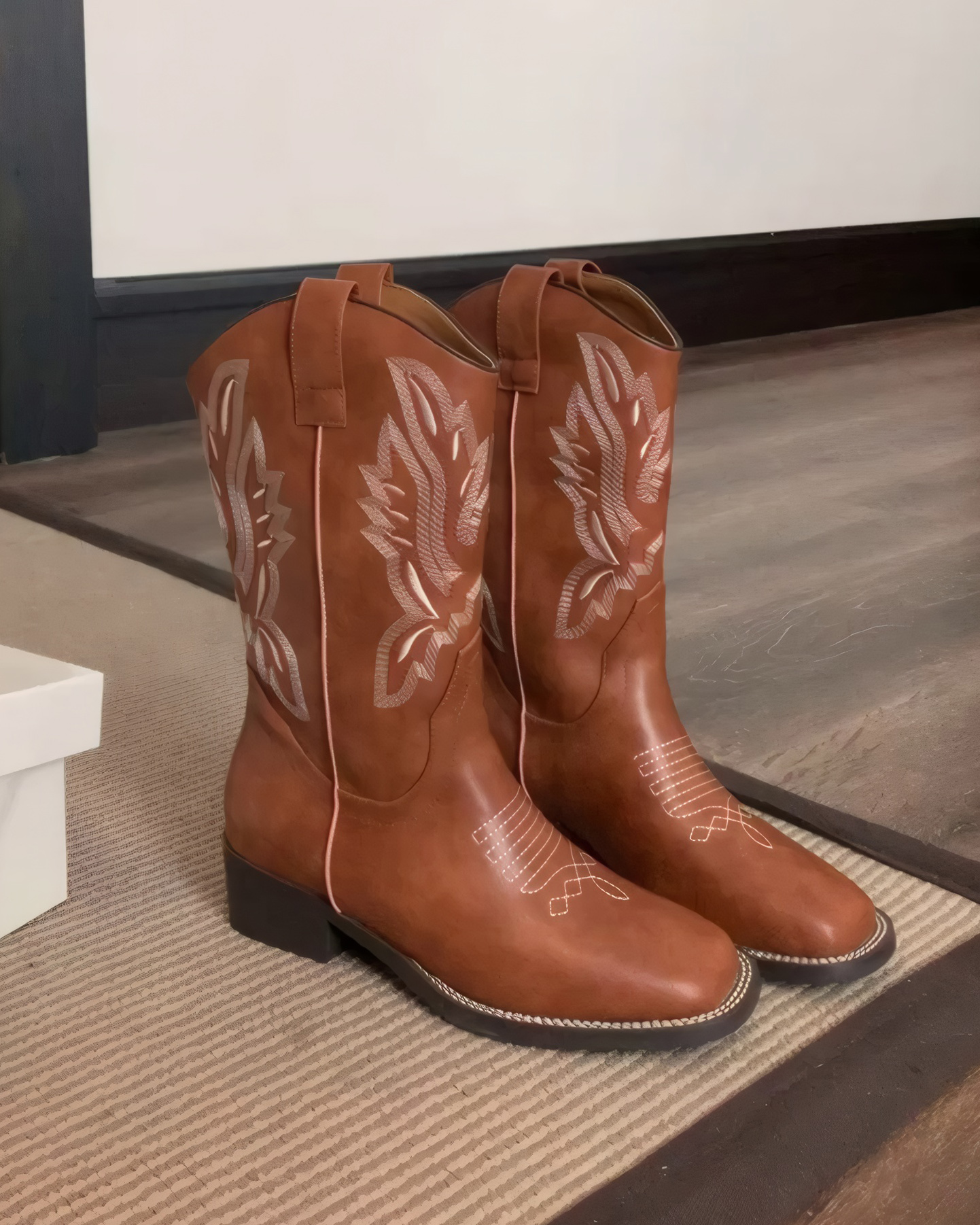 Western V-neck Western Cowboy Embroidered Ankle Boots