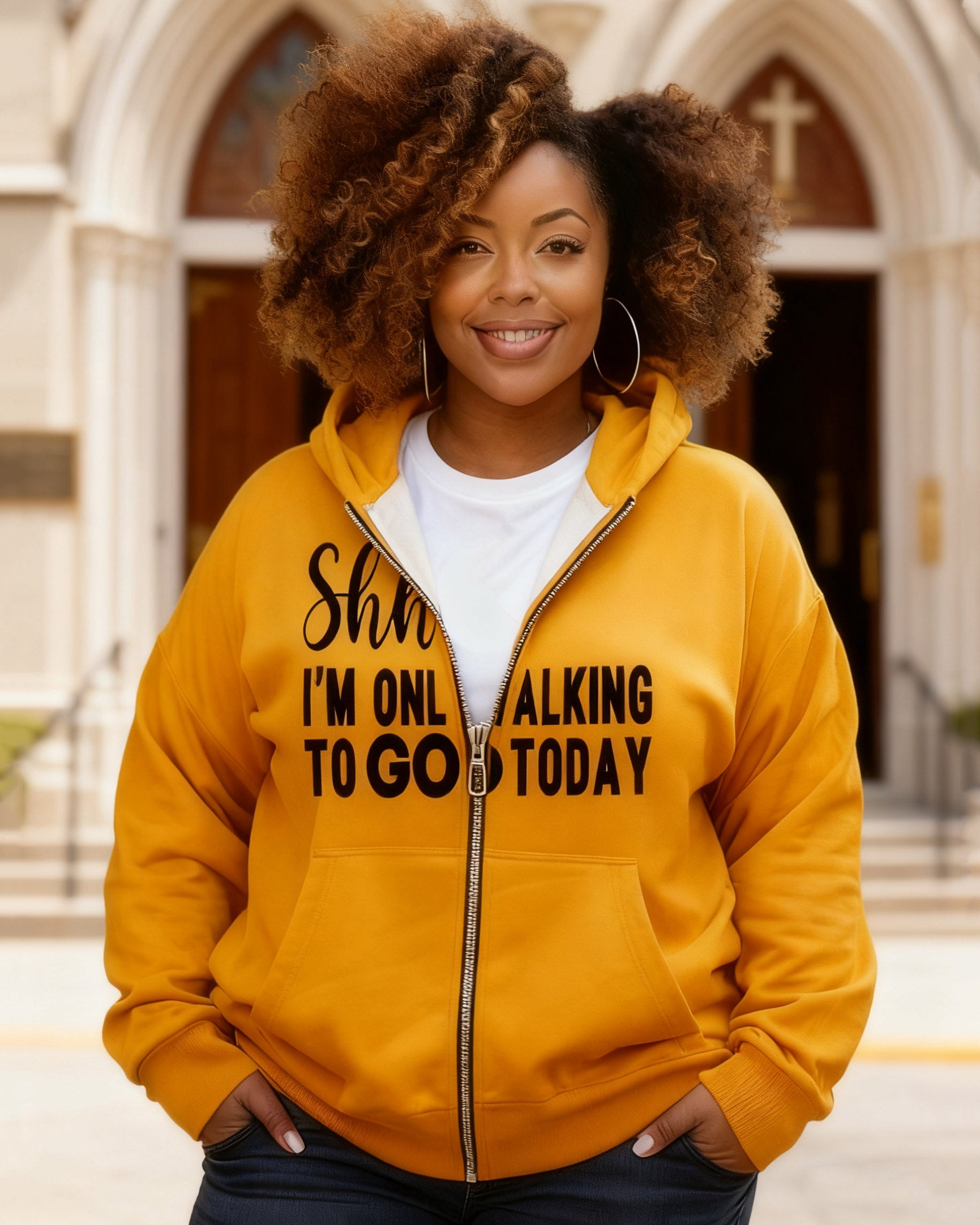 Woman Shhh I'm Only Talking To God Today Long Sleeve Zip-Up Hoodies