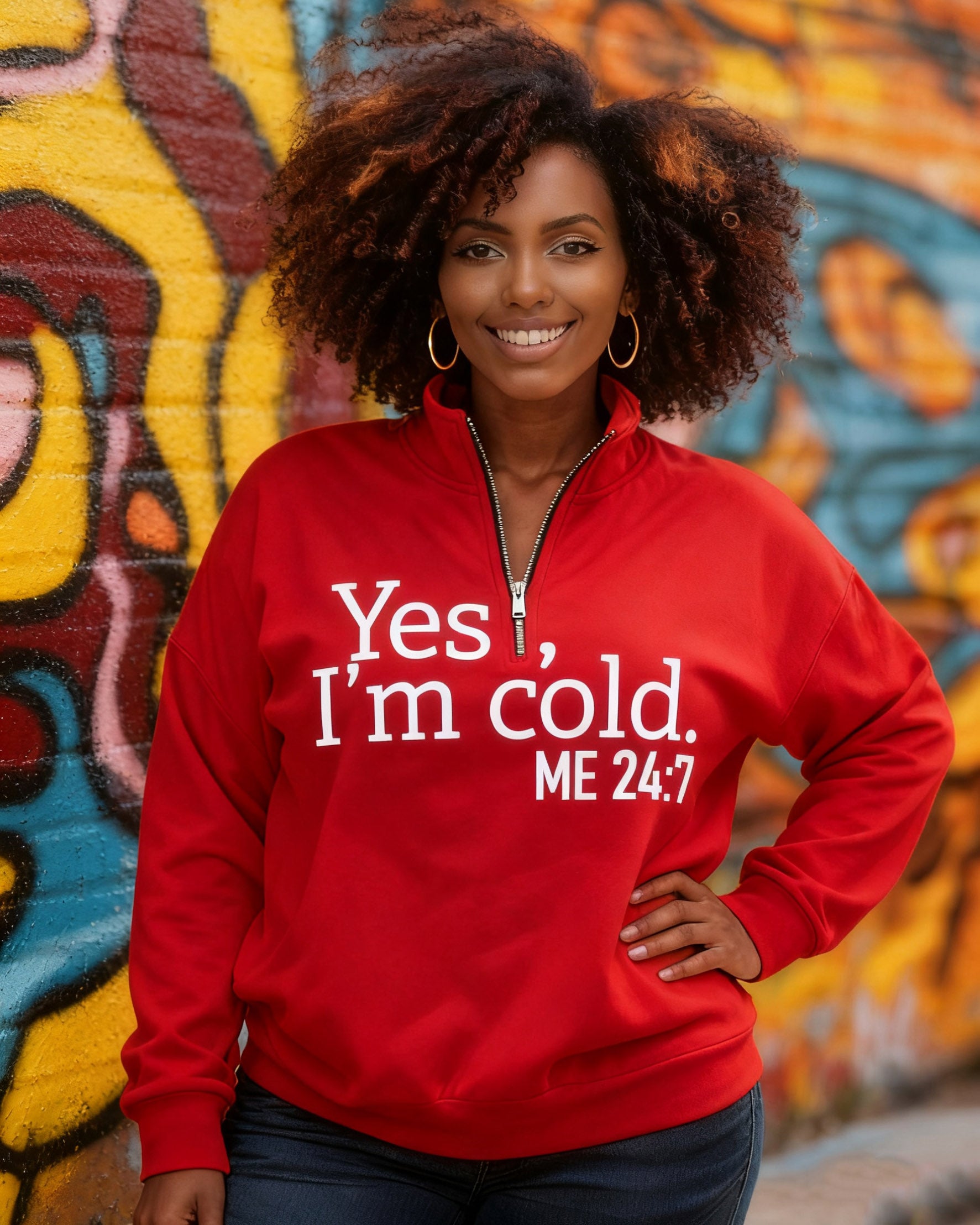 Yes I'm Cold Me 24:7 Stand Collar Zip Up Long Sleeve Sweatshirt